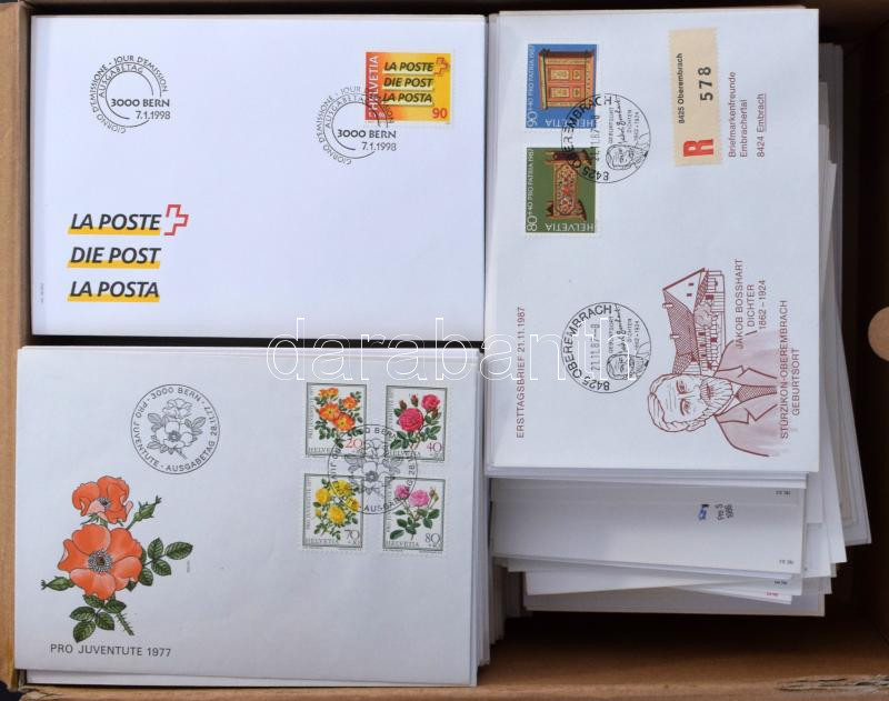 Svájc szép FDC gyűjtemény a 60-as 90-es évekből, közte másodpéldányok és alkalmi bélyegzések, min. 800-900 db