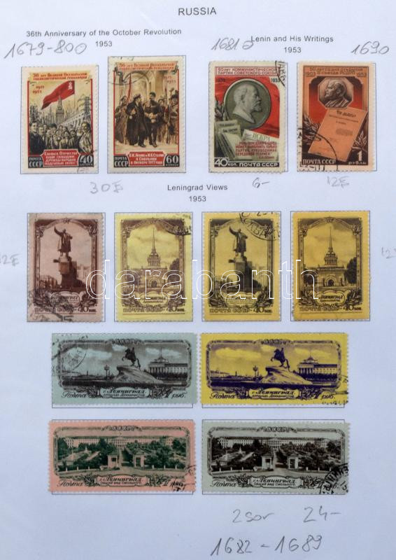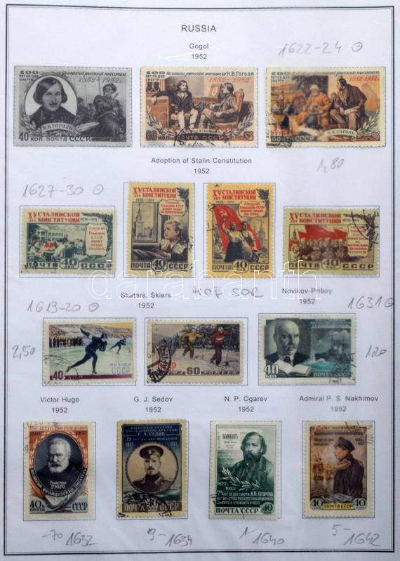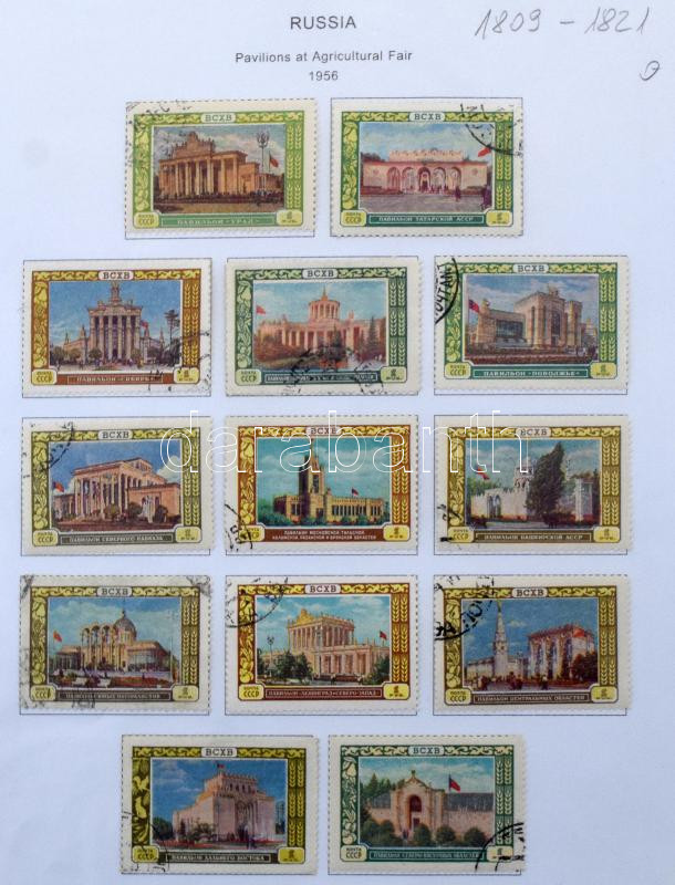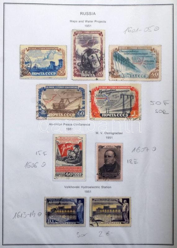 Szovjetunió gyűjteményrészek az 50-es évekből fénymásolt albumlapokon benne jobb kiadások, kevés postatiszta, iratrendezőben