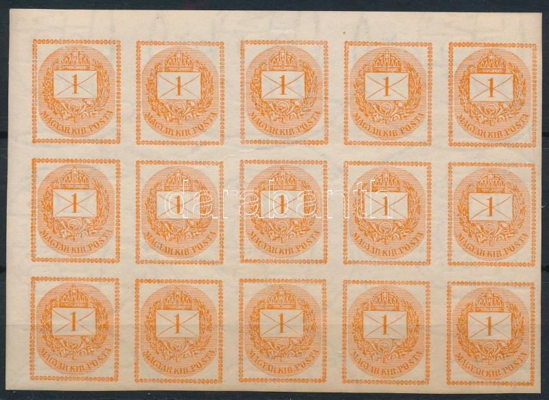 1898 Hírlapbélyeg ívsarki 15-ös tömb, papírránccal (1 db falc felül az ívszélen)
