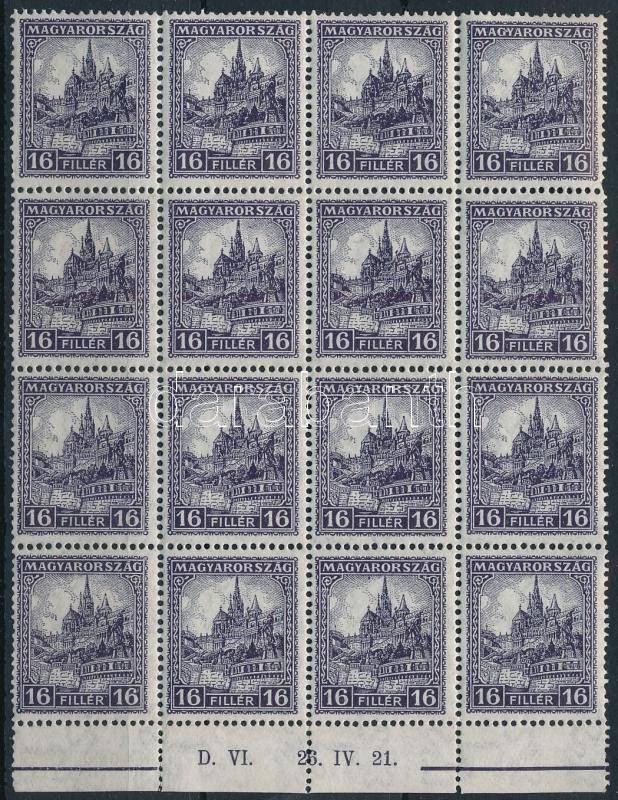 1926 Pengő-fillér (I.) feketésibolya 16f ívszéli 16-os tömbben (26.800)