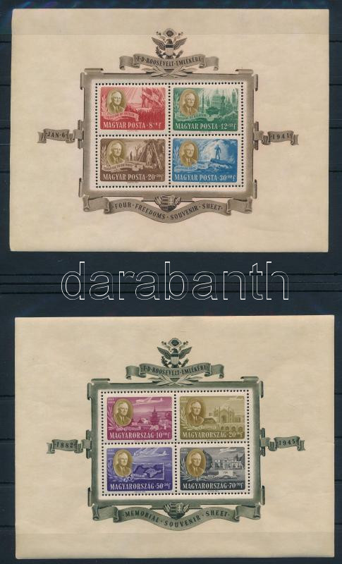 1947 Roosevelt blokkpár (első blokkon hátoldalról látható kis saroktörés) (70.000)