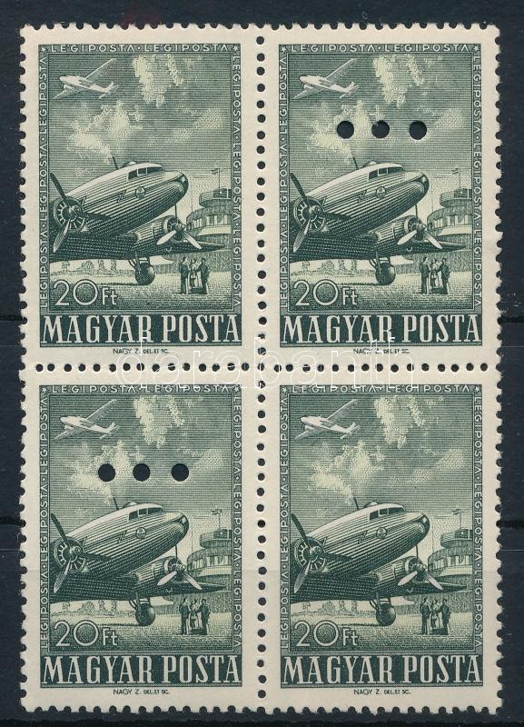 1957 Repülő a Magyar Posta ajándéka négyestömb. Összefüggésben rendkívül ritka, alig látni! (36.000+)
