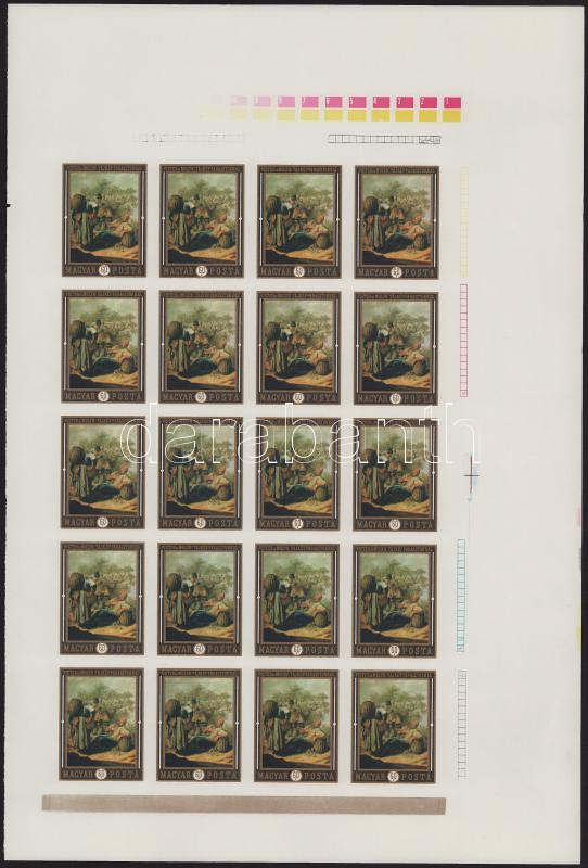 1969 Festmények (VII.) 60f gumi nélküli vágott 20-as nyomdai ív, nyomdai jelzésekkel (ráncok / creases)