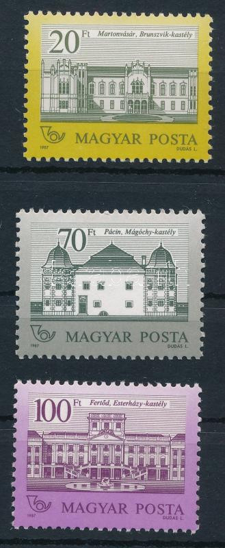 1986 Kastélyok (II.) 20Ft, 70Ft és 100Ft 12 : 11 1/2 fogazással matt-fényes papíron (22.000)