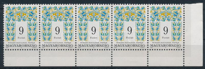 1995 Magyar Népművészet (III.) 9Ft ívsarki 5-ös csík 11 1/2 : 12 fogazással fényes-matt vonalat papíron (50.000)