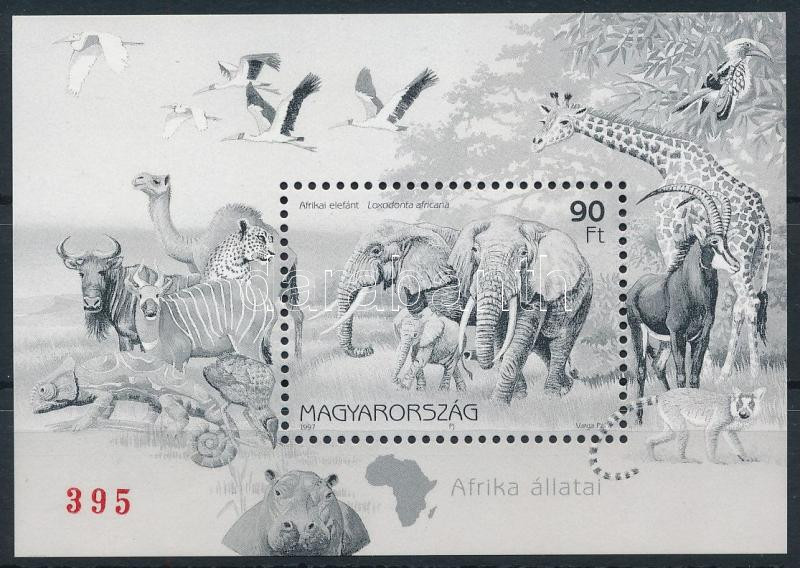 1997 Földrészek állatai feketenyomat blokk piros sorszámmal (100.000)