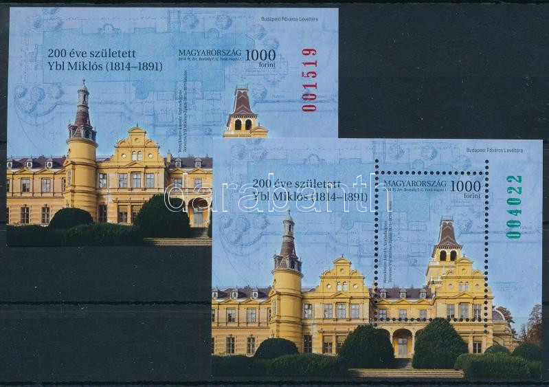 2014 Jeles magyarok (VI.) - 200 éve született Ybl Miklós túlfogazott + vágott blokk (31.000)