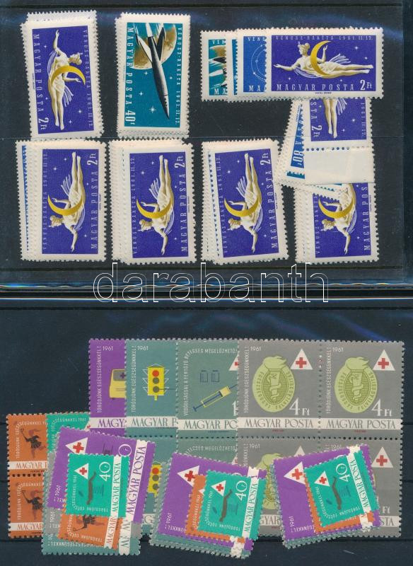1961 Többpéldányos összeállítás teljes sorokkal, összefüggésekkel, 13 stecklapon (72.400+)