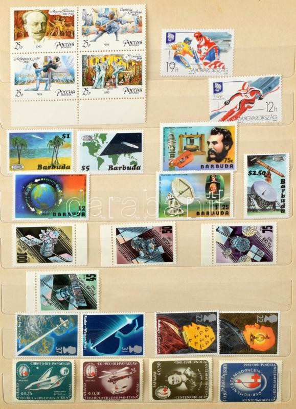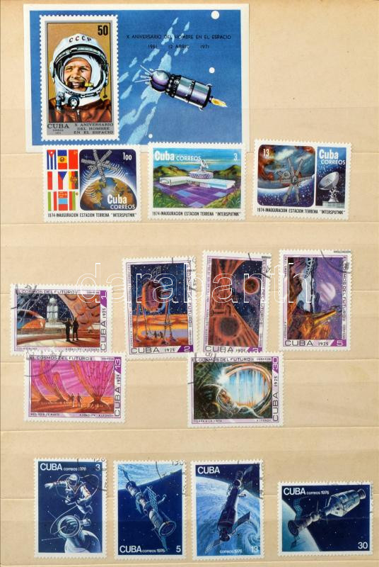 Kuba űrkutatás motívum + magyar névértékes anyag az 1990-es évekből, illetve kevés egyéb külföldi bélyeg 8 lapos A4-es berakóban
