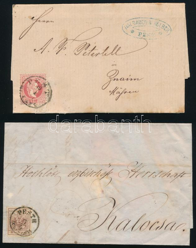 1850 6kr levélen "PESTH" + 1867 5kr levélen "PEST / ESTE" (12.000)