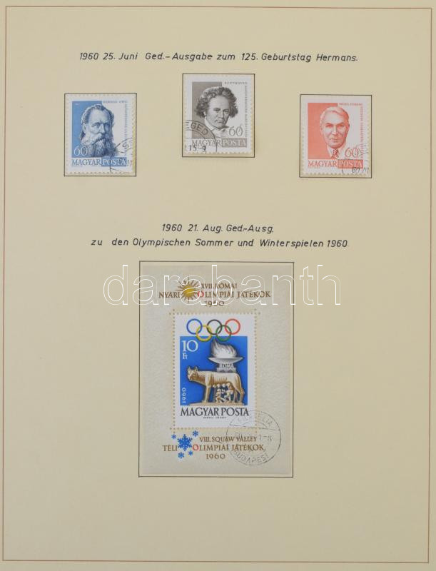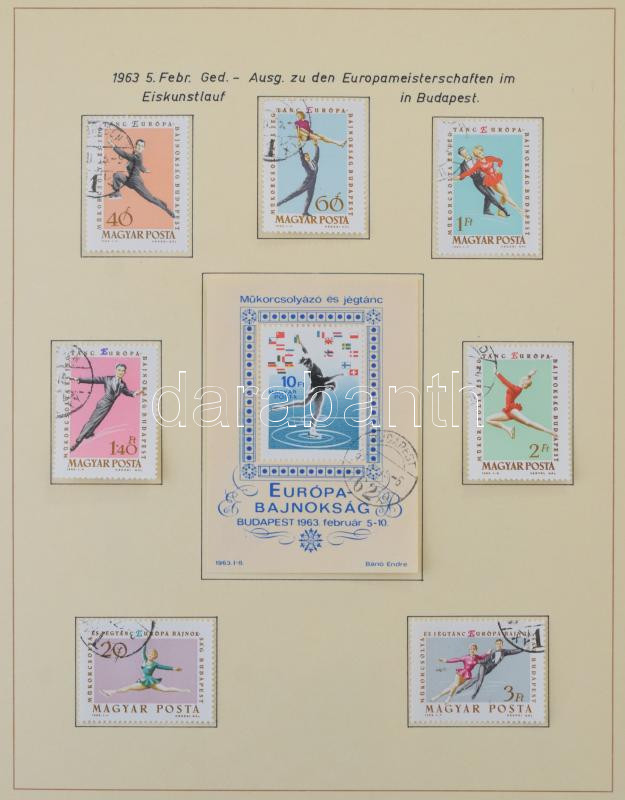 1960-1965 Hiánytalan magyar gyűjtemény házilag előrajzolt Lindner albumlapokon, bordó Lindner gyűrűs borítóban