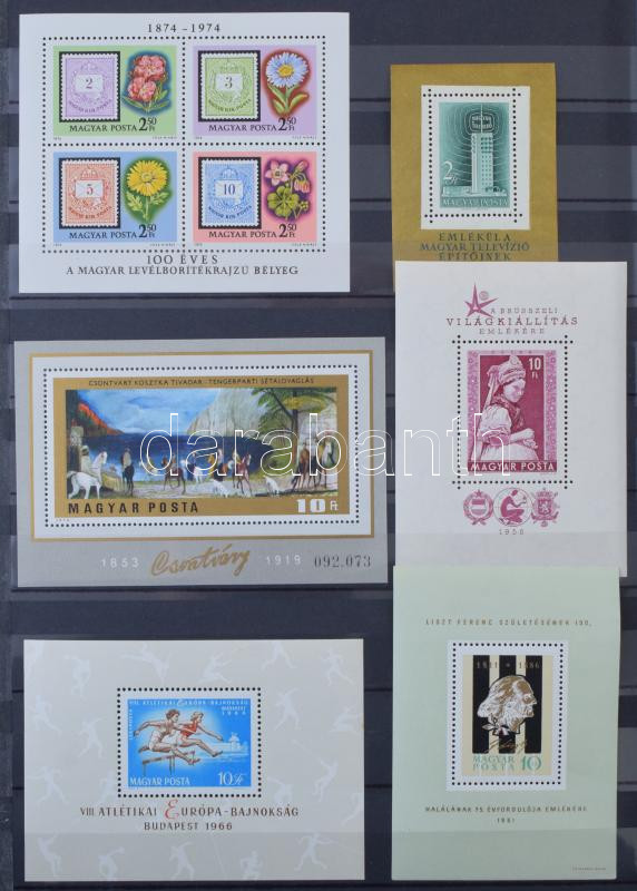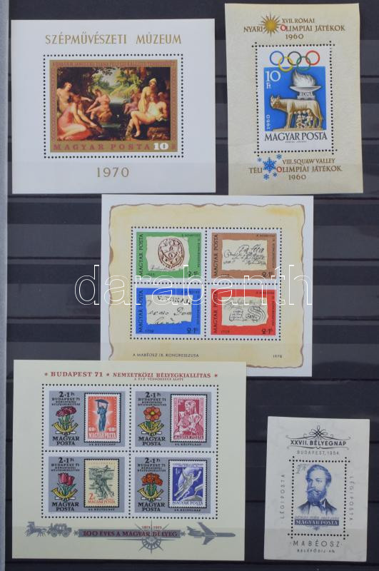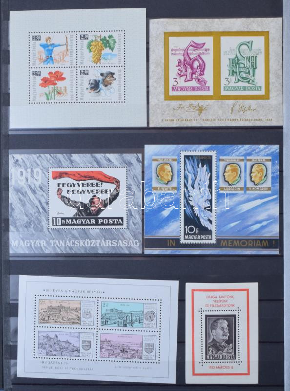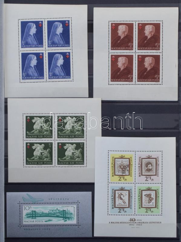 Blokkok és kisívek az 1940-es évektől, köztük sok névértékes, a végén egy kevés pecsételt is, 30 fekete lapos, A/4-es jó minőségű Lindner berakóban