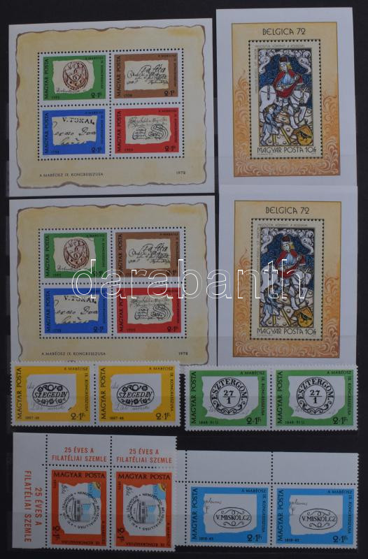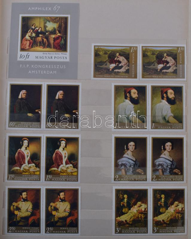 Érintetlen hagyaték: szép magyar postatiszta gyűjtemény az 1960-70-es évekbÅ‘l 1-2 példányban, hozzá külföldi anyag, pl. szovjet Lenin kisÃvsor, kevés modern képeslap, 5 db A/4-es + 1 közepes berakóban, banános ládában