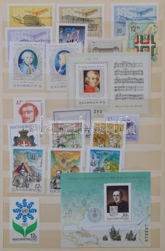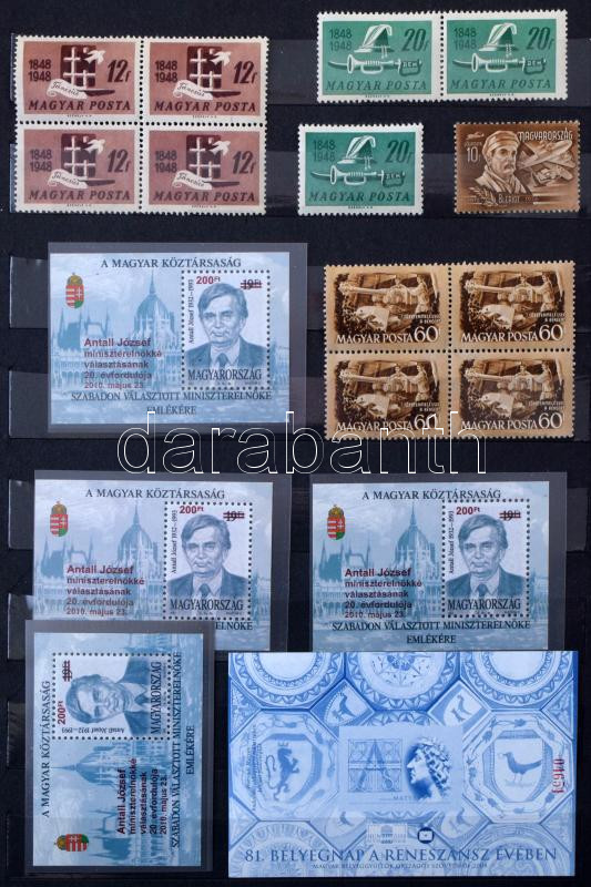Kis magyar tétel, benne 1986-1992 közötti gyűjtemény, sok postatiszta sor és blokk, 2-300 modern FDC , kevés bélyegzett külföldi anyag