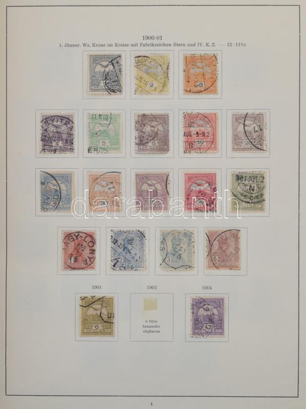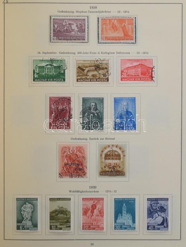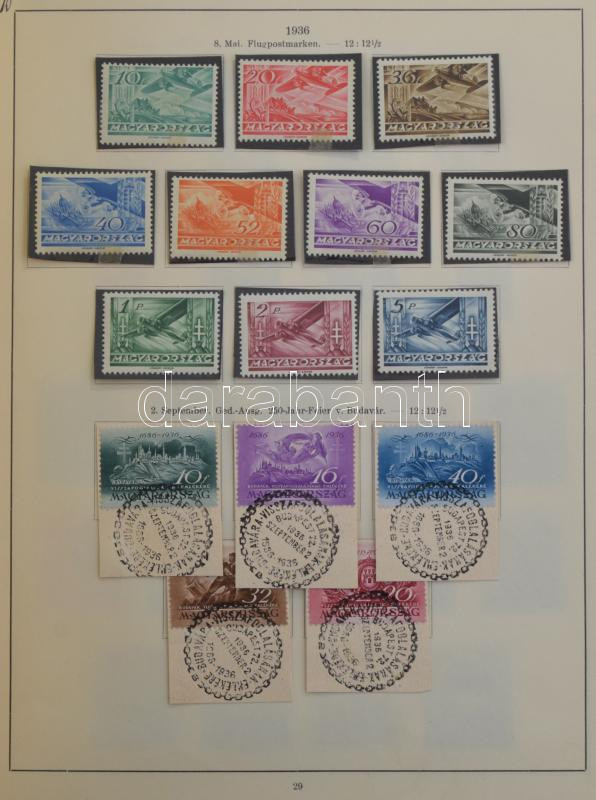 Magyar gyűjtemény maradvány a Krajcárosoktól 1944-ig, benne néhány jobb kiadás, portók és hivatalos bélyegek, előnyomott albumban