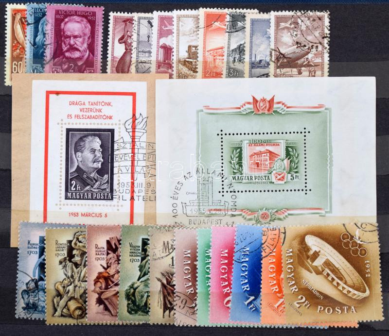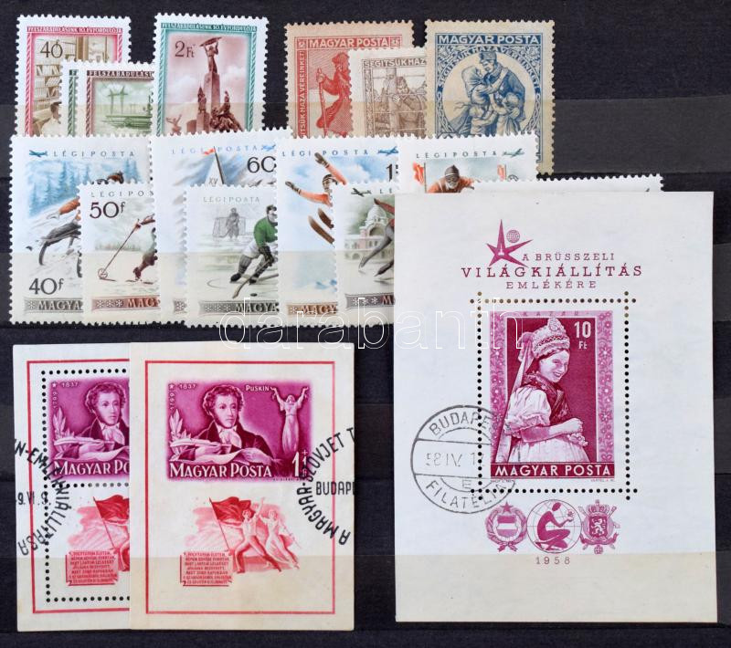 Magyar sorok és blokkok, főleg falcos kiadások 10 lapos közepes berakóban, jobbakkal (Ötéves terv, Puskin blokkpár stb.)