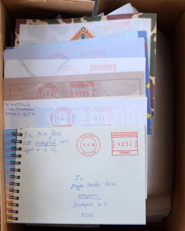 Másolópapír doboz benne gépi bélyegzésű és díjelőleges küldemények