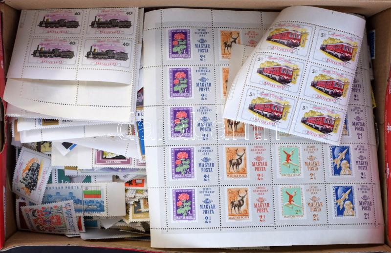 Több ezer db bélyeg, benne összefüggések, blokkok, cipős dobozban ömlesztve