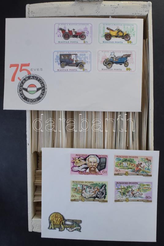 Több száz darab bélyegzés nélküli magyar FDC sok blokkal, fa dobozban