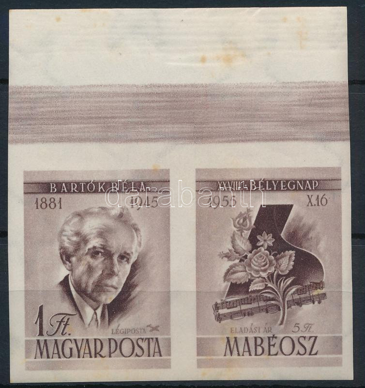 1955 Bélyegnap vágott szelvényes ívszéli bélyeg (10.000) (rozsda / stain)