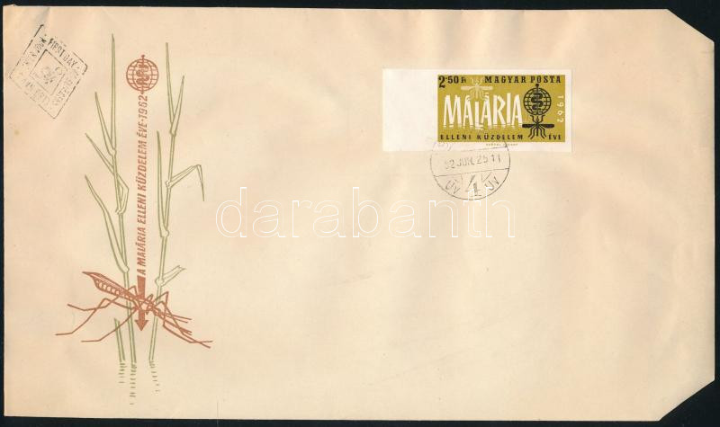 1962 A malária elleni küzdelem éve I. vágott ívszéli bélyeg FDC-n