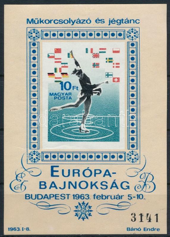1963 Műkorcsolyázó és jégtánc EB vágott blokk (16.000)
