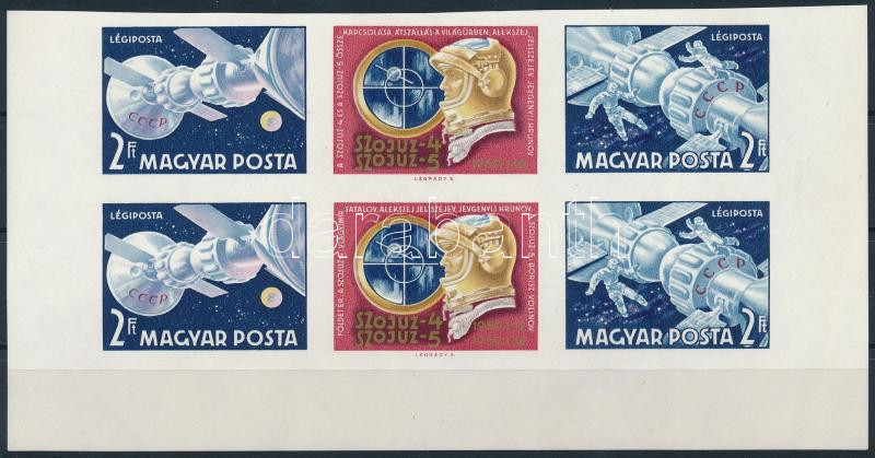 1969 Szojuz-4-5 vágott ívsarki szelvényes négyestömb (2 db csík)