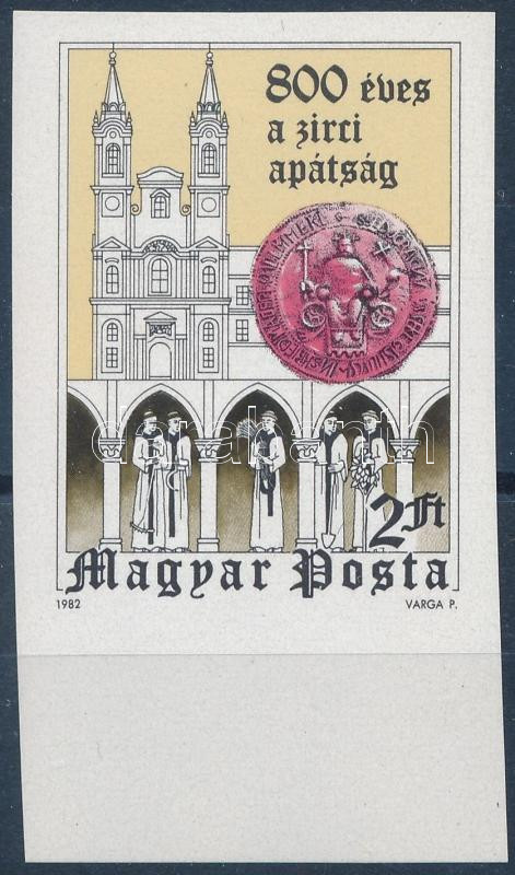 1982 800 éves a Zirci Apátság ívszéli vágott bélyeg