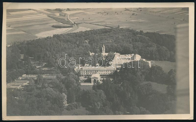 1937 Alcsút látképe, légifotó, M. Kir. Légügyi Hivatal pecsétjével, kissé hajlott, 10x16,5 cm