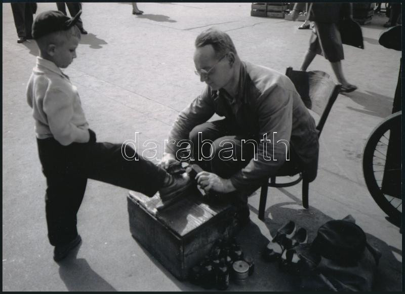 1956 Budapest, a Keleti pályaudvar előtt, Járai Rudolf (1913-1993) budapesti fotóriporter felvétele (Cipőtisztító), 1 db modern nagyítás, jelzés nélkül, 15x21 cm