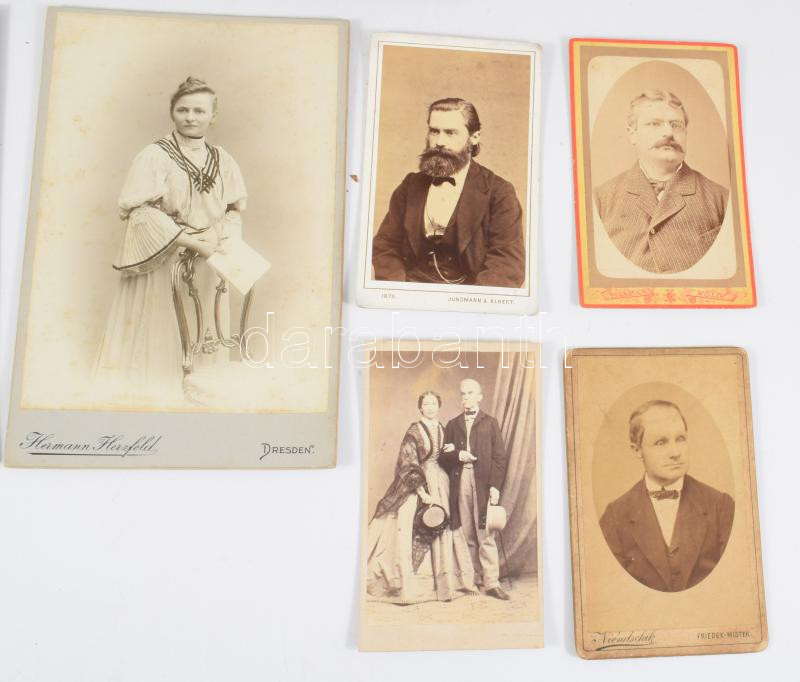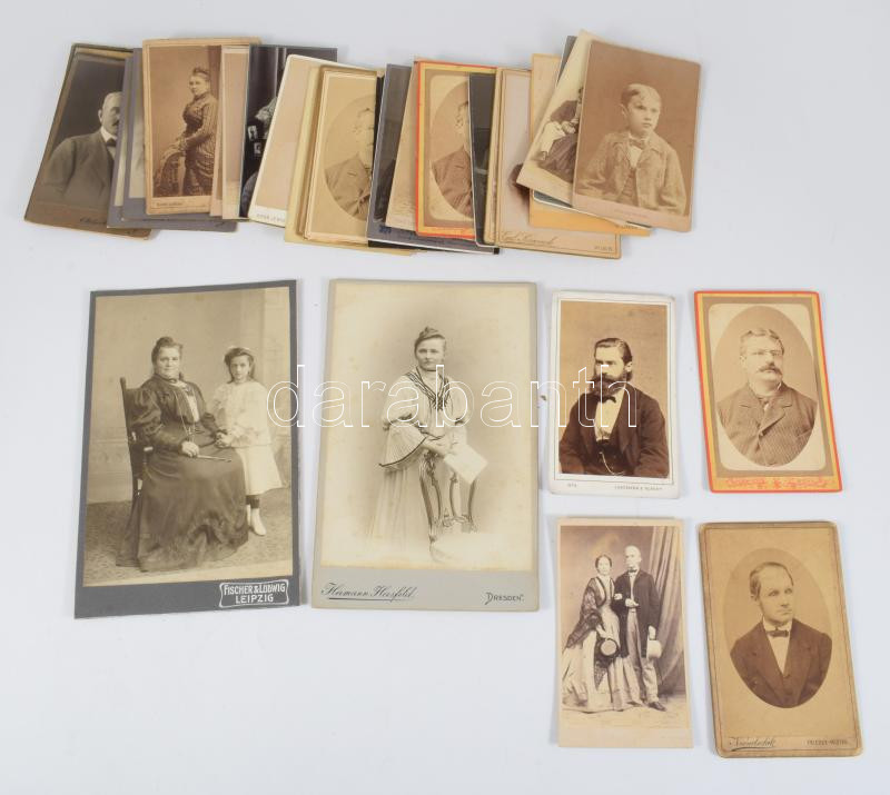 30 db vegyes külföldi (cseh, osztrák) műtermekből származó keményhátú fotó, főként vizitkártyák