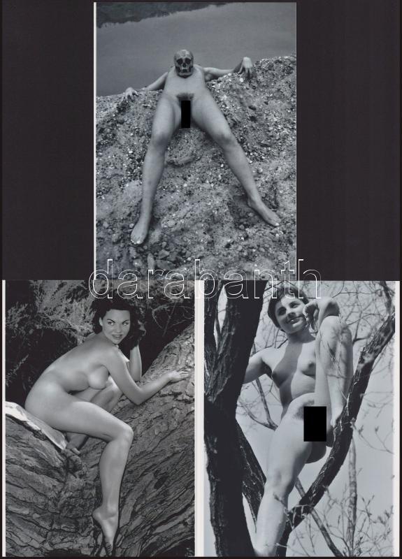 Eltérő időben készült aktfotók szabadtéren, szolidan erotikus felvételek, 3 db modern nagyítás, jelzés nélkül, 21x15 cm