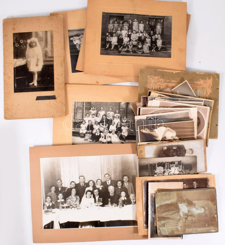 Kb 40 darabos vegyes fotótétel: kabinetfotók, nagy méretű csoportképek, fotólapok ca 1890-1940