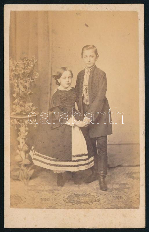 cca 1865 Gyerekek portréja, vizitkártya Mayer György fényképíró pesti műterméből, 10,5x6,5 cm