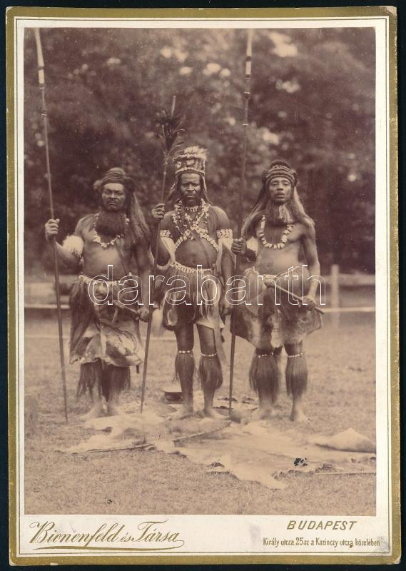 cca 1885-1900 Feltehetőleg óceániai törzsi harcosok keményhátú portréfotója, Bienenfeld és Társa budapesti műterméből, 16x11 cm