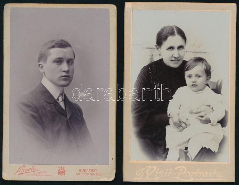 cca 1885-1905 A csáfordi és potyondi Pottyondy család tagjai: Pottyondy Gézáné, szül. szentgyörgyvölgyi Csupor Gizella (1855-1929) és fia, Pottyondy Géza (1885-1941), 2 db vizitkártya, a hátoldalon feliratozva, 10,5x6,5 cm