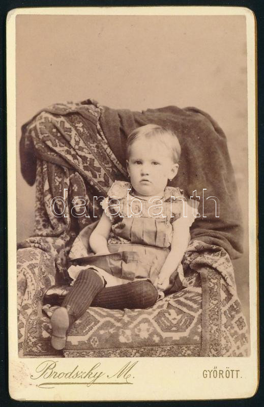 cca 1890 Kislány portréja, vizitkártya Brodszky Mór győri műterméből, 10,5x6,5 cm