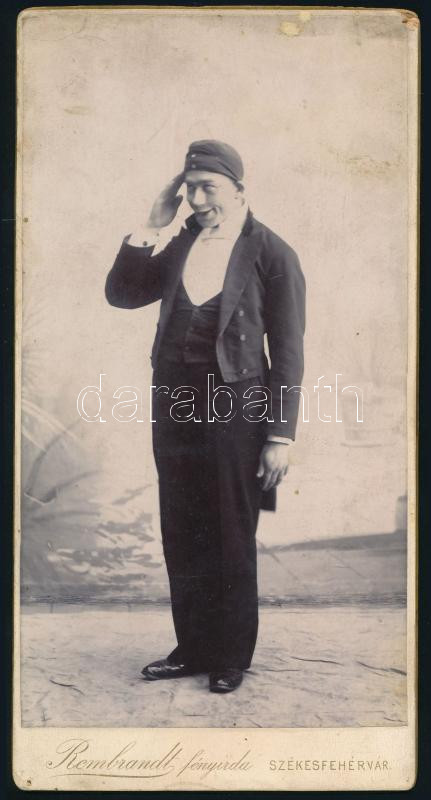 cca 1900 Színész (?) portréja, kabinetfotó a székesfehérvári Rembrandt fényirdából, 21x11 cm
