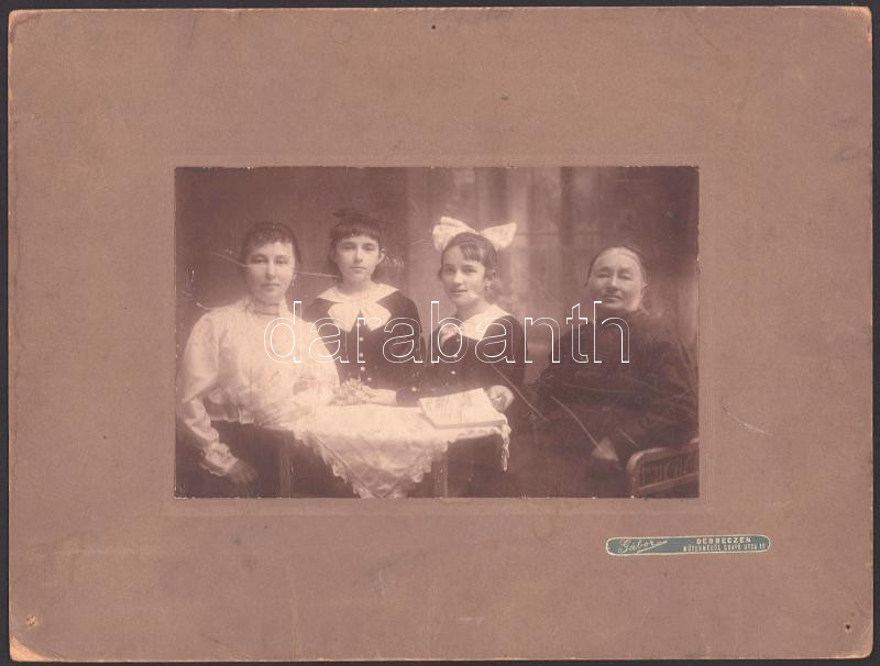cca 1910 Családi fotó, kartonra kasírozott fotó Gábor János debreceni műterméből, kissé viseltes állapotban, 12,5x20 cm, karton: 25x33 cm