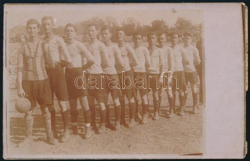 cca 1920-1930 Labdarúgócsapat csoportképe, fotólap, jelzés nélkül, 9x14 cm