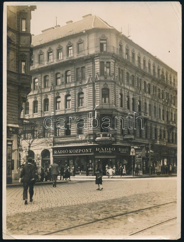 cca 1927-1936 Rákóczi út 73. sz. és a Berzsenyi utca sarka, a sarkon a Rádió Központtal, az épület sarokhomlokzata 1936-ban elomlott, de maga az épület ma is áll, a sarkain törésnyomokkal, 24x18 cm