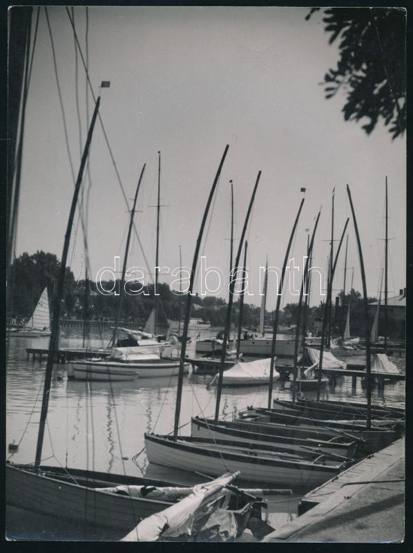 cca 1930-1940 Szendrő István (1908-2000): Vitorlások a kikötőben, Siófok, sarokhajlás, 22,5x17 cm