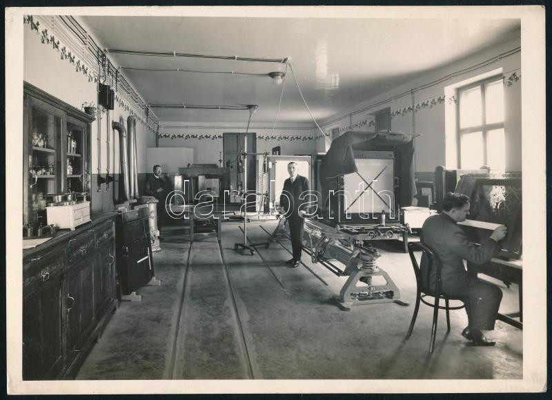 cca 1930 Virágh János a Magyar Honvéd Térképészeti Intézet fotó-reprodukciós termében, 13x18 cm