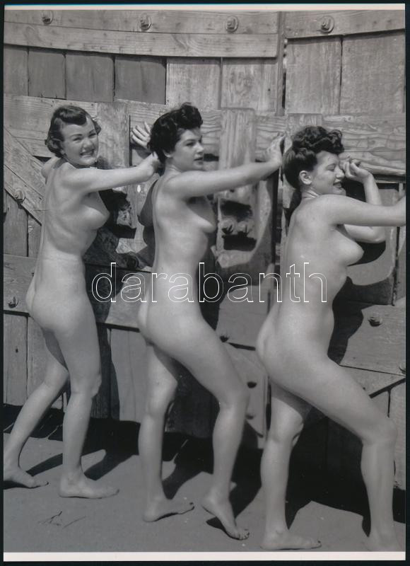 cca 1950 "Húsvéti locsolók döngetik a nagykaput", szolidan erotikus felvétel, 1 db modern nagyítás, jelzés nélkül, 21x15 cm
