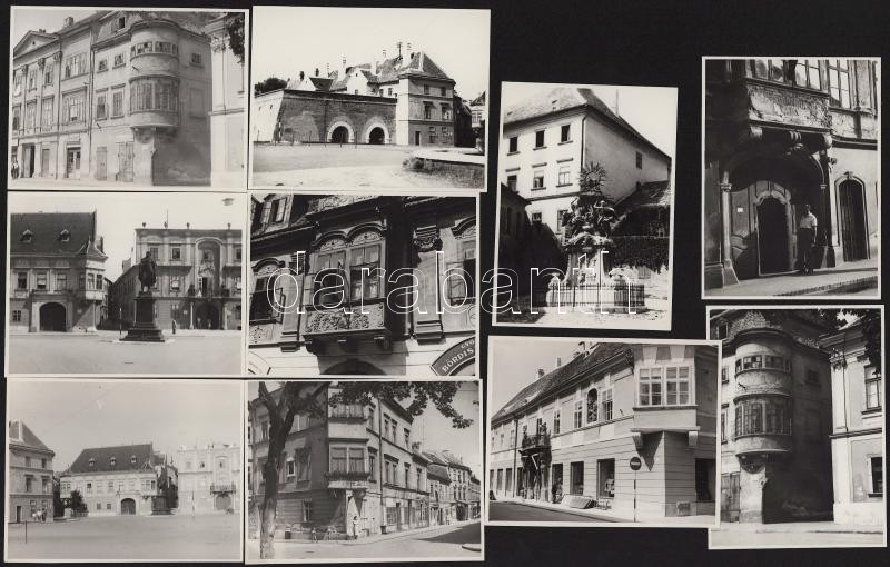 cca 1960 Győr belváros fotói, rajta a Kisfaludy Károly szoborral, az Ott-, és a Vastukós-házzal, és más ismertebb épületekkel, 8x11 cm