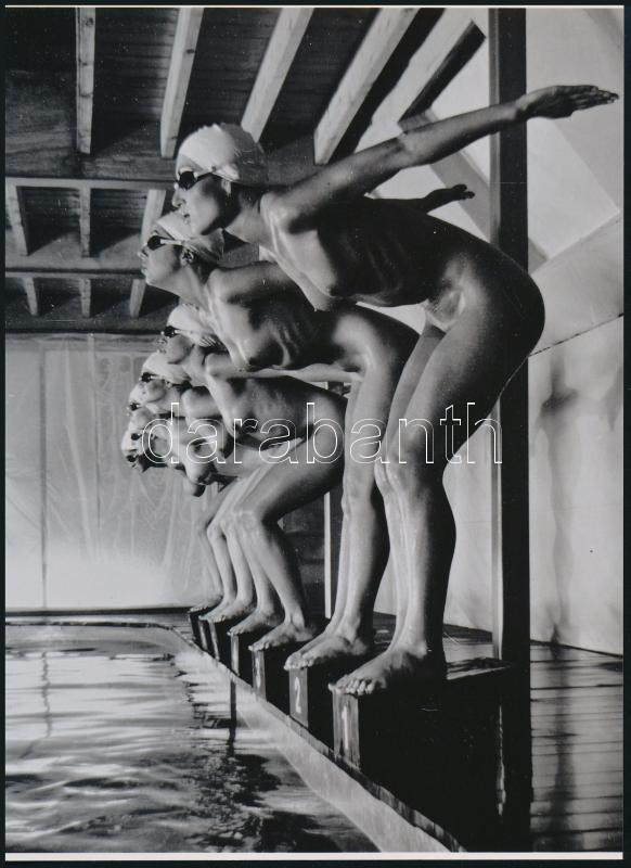 cca 1960 "Mellúszók versenye", szolidan erotikus felvétel, 1 db modern nagyítás, jelzés nélkül, 21x15 cm