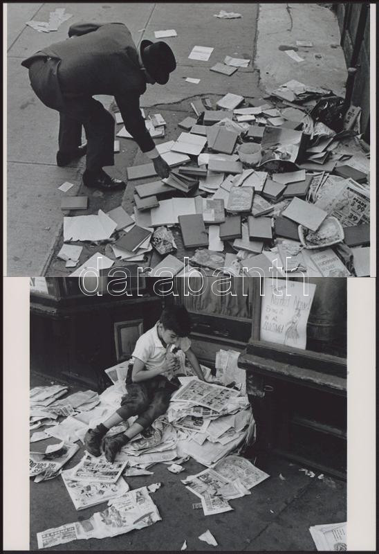 cca 1972 1933 Kertész Andor (később André Kertész) (1894-1985) magyar (később francia - amerikai) fotóművész felvételei (Tudásszomj I-II.), 2 db modern nagyítás, jelzés nélkül, 15x21 cm