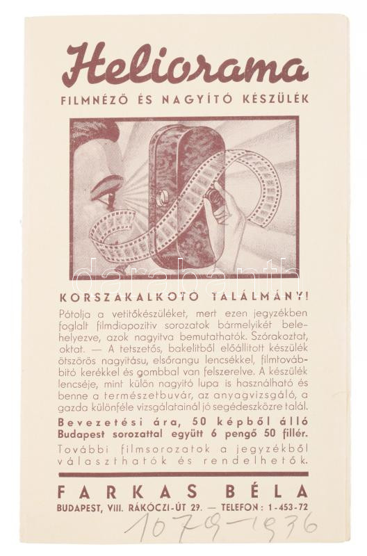 Heliorama filmnéző és nagyító készülék kihajtható képes árjegyzék