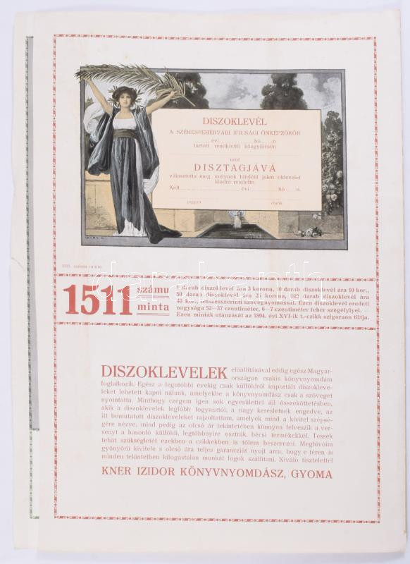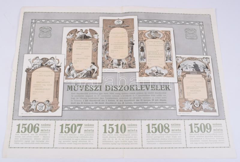ca 1910 Kner Izidor Művészi díszoklevelek mintákat bemutató reklám nyomtatvány 42x32 cm