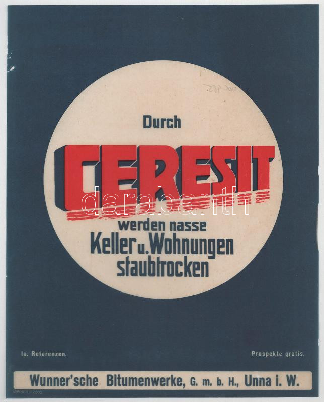 ca 1930 Ceresit reklám plakát. 21x28 cm Biblia (pausz) papíron. 22x26 cm
